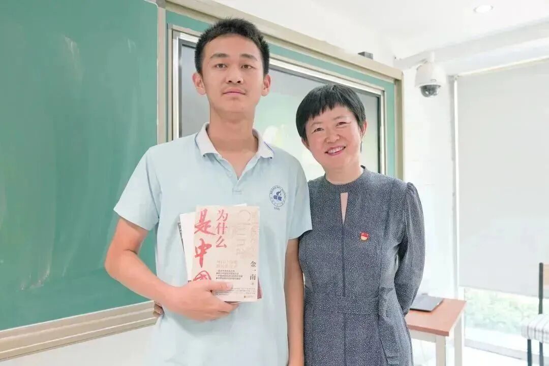 国际部高一1班 孙玄同:在分享会前,我便对《为什么是中国》这本书有一定的接触,但并未切实了解,这一次牛书记的分享,不仅将书中的内容讲解地简洁又到位,更与我们国际部青年学子的责任担当及未来展望联系到一起,让我们心中的那份责任感和对国家的热爱更进一步。最后,牛书记对我们寄予了厚望,希望我们国际部学生走出国门后心怀理想,心怀祖国,争取未来报效祖国。在之后的环节,我与她进行了互动,将我心中的一个思考已久的问题讲了出来,书记十分细致而且全面地解决了我的问题,还给我们提出许多建议、提醒与告诫。我有幸收到了她的赠礼,三本书籍,并且也收到一份简短的寄语“建议多读点书”。这次的读书会让我印象深刻,不仅让我再次收获了几本好书,更让我再次对国际部的教育理念有了更多的认识。希望参与本次读书会的每个人都有所收获,走出国门,为国争光!